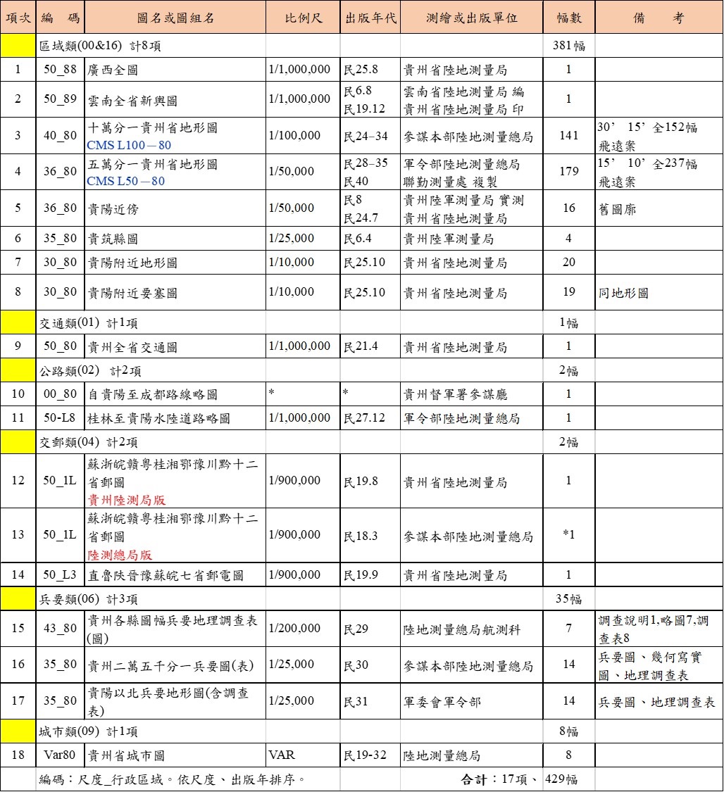 表1 貴州測繪機構歷史地圖廣惠專案檢整清單