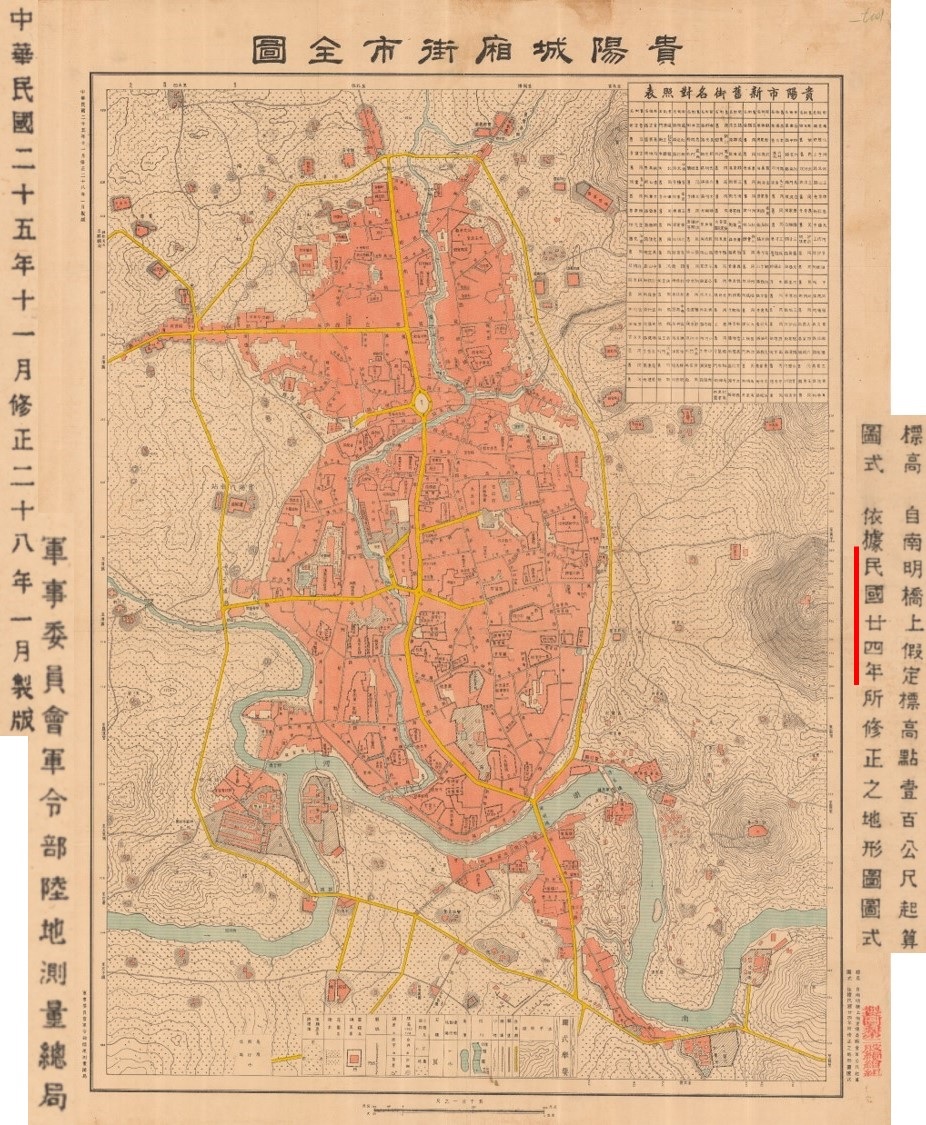 貴州省城市圖_1/5,000《貴陽城廂街市全圖》 民國25年修正、28年製印 軍委會軍令部陸地測量總局 60.2x79.1cm