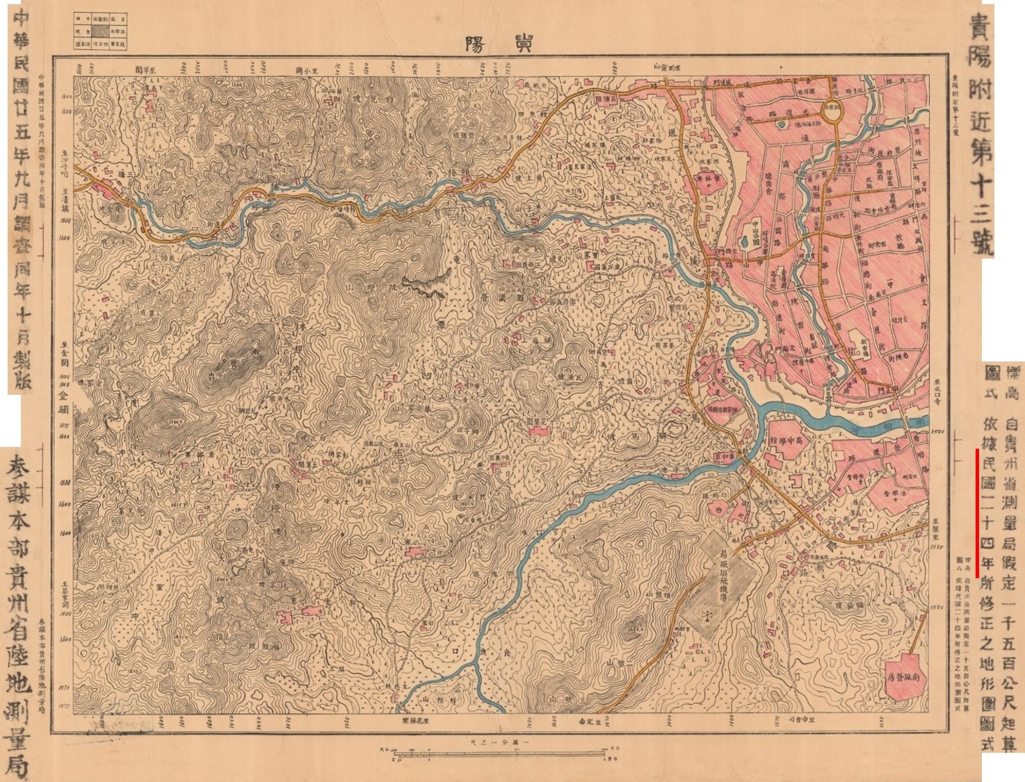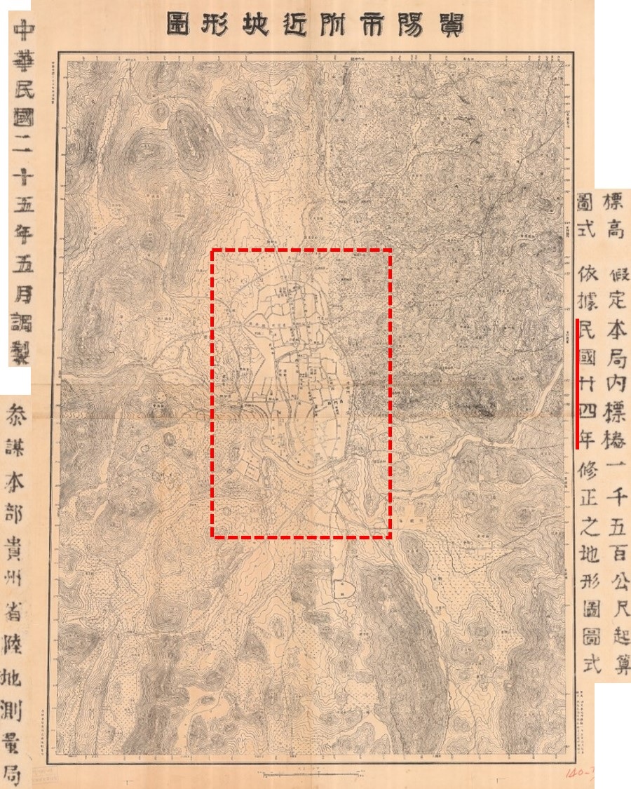 1/10,000《貴陽附近地形圖》_貴陽 民國25年調查、製印 貴州省陸地測量局 59.0x 46.1cm [本圖組計有20幅。]